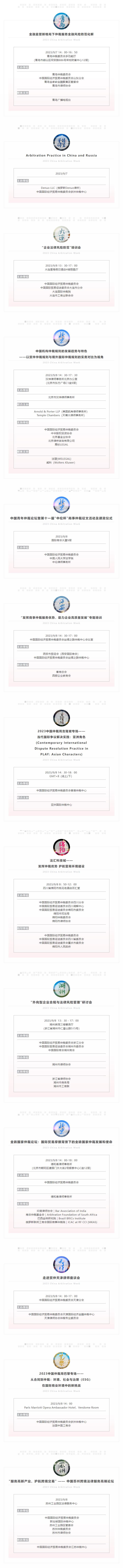 清風(fēng)生,白云遏,臨川筆,彭澤樽。截至今日2023中國(guó)仲裁周整體75場(chǎng)活動(dòng)逐場(chǎng)推告如下: