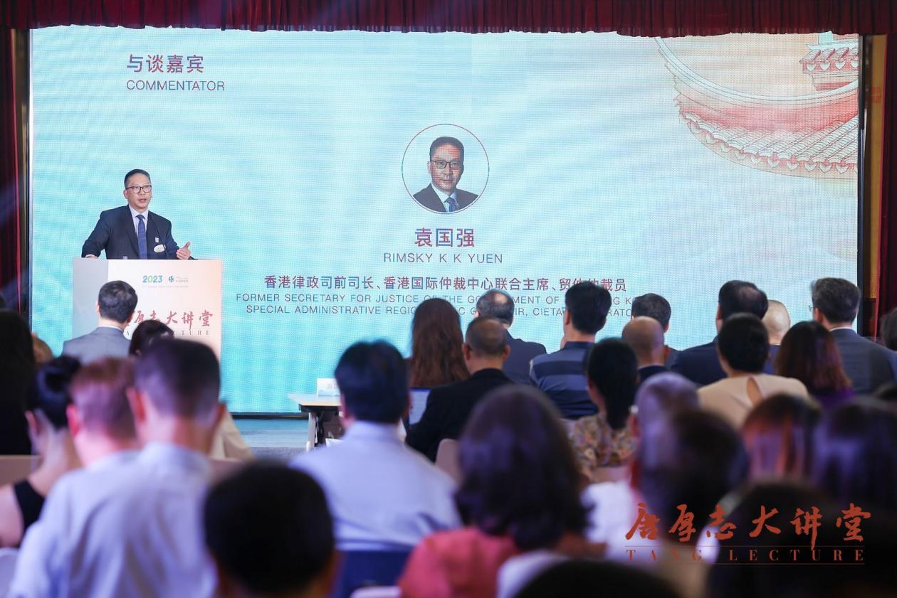 隨后,香港律政司前司長袁國強作為與談人發(fā)言。他從微觀和宏觀兩個視角對王軼教授的演講進行了回應。在微觀上,他提出在數(shù)據(jù)屬性、數(shù)據(jù)利益的分配以及涉數(shù)據(jù)問題的法律規(guī)范類型等問題上,尚待進一步研究;在宏觀上,數(shù)據(jù)和先進科技的關(guān)系也值得深思,亟需研究科技將如何影響爭議解決進而影響公正。