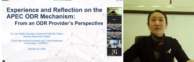 2024年1月25日-27日,亞太經合組織(APEC)經濟委員會關于網上爭議解決(ODR)的研討會在日本東京成功舉辦。會議的主題是“APEC經濟體的網上爭議解決實踐:包括APEC ODR合作框架下的實踐”,會期為三天,以線上線下相結合的方式進行。來自中國、中國香港、美國、日本、新加坡、韓國、加拿大、印度尼西亞等國家和地區(qū)的政府部門、爭議解決機構和學界的30多位在線爭議解決領域的專家、學者、機構代表等參加了會議研討。貿仲作為APEC ODR機制下官方認可的現有四個ODR服務機構之一,受邀派代表線上參會并發(fā)言。
