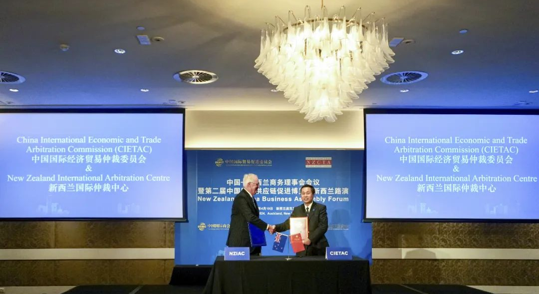 貿(mào)仲代表團(tuán)出席了由中國貿(mào)促會(huì)和新西蘭中國貿(mào)易協(xié)會(huì)共同主辦的中國-新西蘭商務(wù)理事會(huì)會(huì)議暨第二屆中國國際供應(yīng)鏈促進(jìn)博覽會(huì)新西蘭路演。任鴻斌會(huì)長(zhǎng)出席活動(dòng)并致辭,新西蘭-中國貿(mào)易協(xié)會(huì)主席約翰·考克倫(John Cochrane)、新西蘭貿(mào)發(fā)局大中華區(qū)主任白安祖(Andrew White)、中國駐新西蘭大使王小龍、駐奧克蘭總領(lǐng)事陳世杰等出席活動(dòng),中新兩國工商界代表200余與會(huì)。會(huì)上,貿(mào)仲副主任兼秘書長(zhǎng)王承杰與新西蘭國際仲裁中心主任約翰·格林(John Green)代表雙方簽訂了合作協(xié)議。該合作協(xié)議搭建了中新兩國仲裁機(jī)構(gòu)的交流平臺(tái),有利于通過共同努力增進(jìn)中方和新方企業(yè)在仲裁、爭(zhēng)議風(fēng)險(xiǎn)防范等方面的認(rèn)識(shí)與理解。