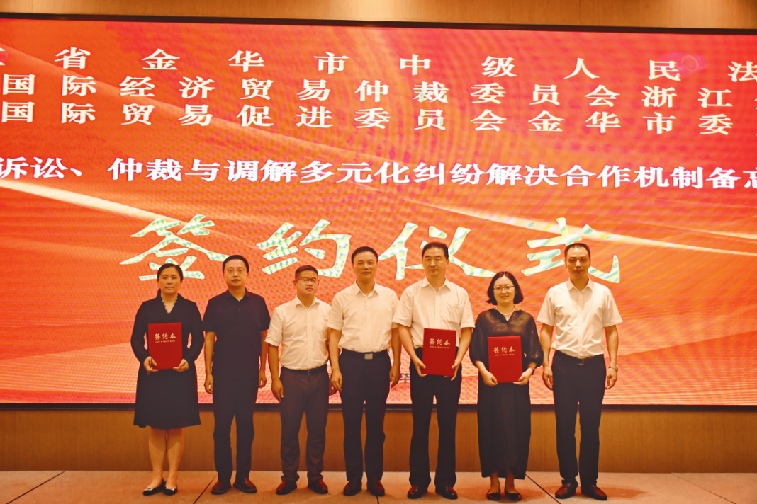為公平、高效、便捷化解各類商事糾紛,貿(mào)仲浙江分會(huì)與金華市中級(jí)人民法院、金華市貿(mào)促會(huì)共同推進(jìn)建立行之有效的訴訟、仲裁、調(diào)解對(duì)接與糾紛多元化解機(jī)制,在本次活動(dòng)中簽署《關(guān)于訴訟、仲裁與調(diào)解多元化糾紛解決合作機(jī)制備忘錄》。各方將進(jìn)一步探索和創(chuàng)新工作體制,完善多元化商事爭(zhēng)議服務(wù)體系,打造法治化、國(guó)際化、專業(yè)化營(yíng)商環(huán)境,為金華市企業(yè)開展國(guó)際經(jīng)貿(mào)業(yè)務(wù)保駕護(hù)航。