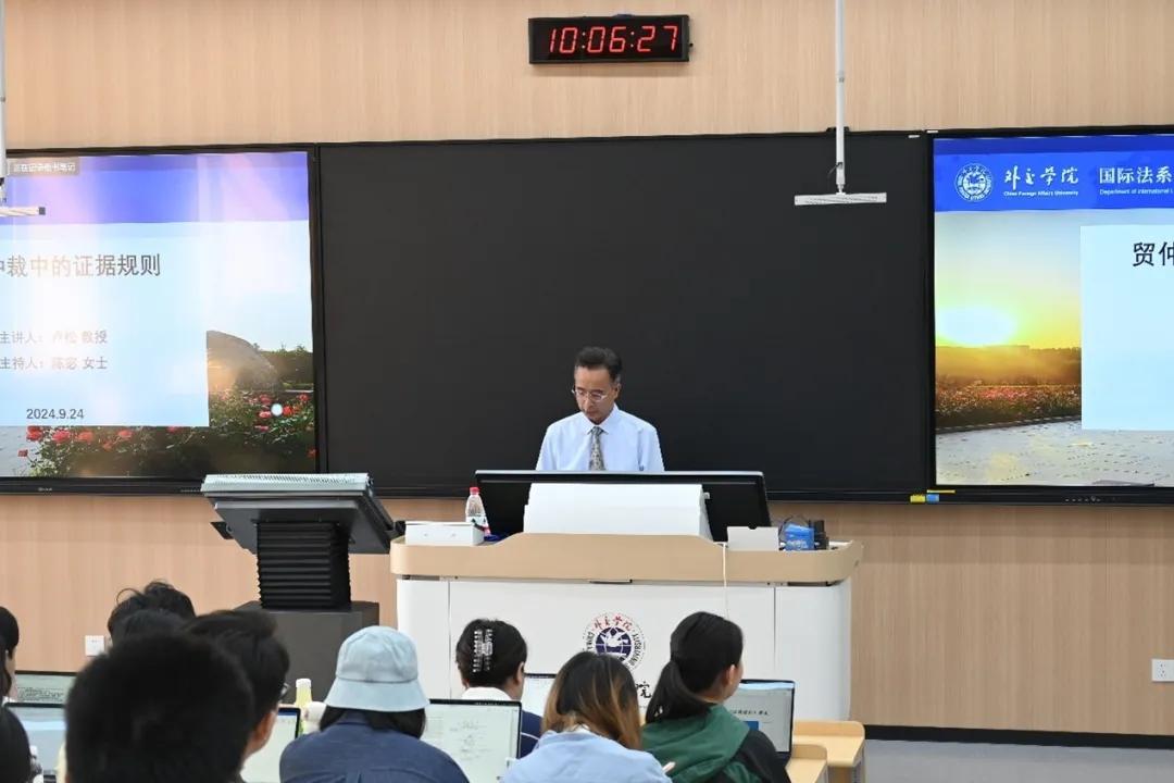 在講座中,主講人盧松教授,作為外交學(xué)院國際法系的杰出校友和貿(mào)仲《證據(jù)指引》的主要制訂者與修訂者,憑借其深厚的法學(xué)理論功底與多年的仲裁實務(wù)經(jīng)驗,為聽眾帶來了一場全面而深入的貿(mào)仲仲裁證據(jù)規(guī)則解析。盧教授首先強(qiáng)調(diào)了證據(jù)規(guī)則在仲裁過程中的核心地位,并結(jié)合具體案例,生動闡釋了證據(jù)如何影響仲裁結(jié)果的公正性與合理性。而后,盧松教授詳細(xì)介紹了貿(mào)仲仲裁中證據(jù)規(guī)則的制定背景、發(fā)展歷程及主要內(nèi)容,逐一解析了各項條款的具體含義,重點(diǎn)講解了舉證責(zé)任、證據(jù)形式、證據(jù)交換與質(zhì)證、證據(jù)保全等主要內(nèi)容,并通過實際案例展示了這些規(guī)則在仲裁實踐中的應(yīng)用場景與操作細(xì)節(jié)。