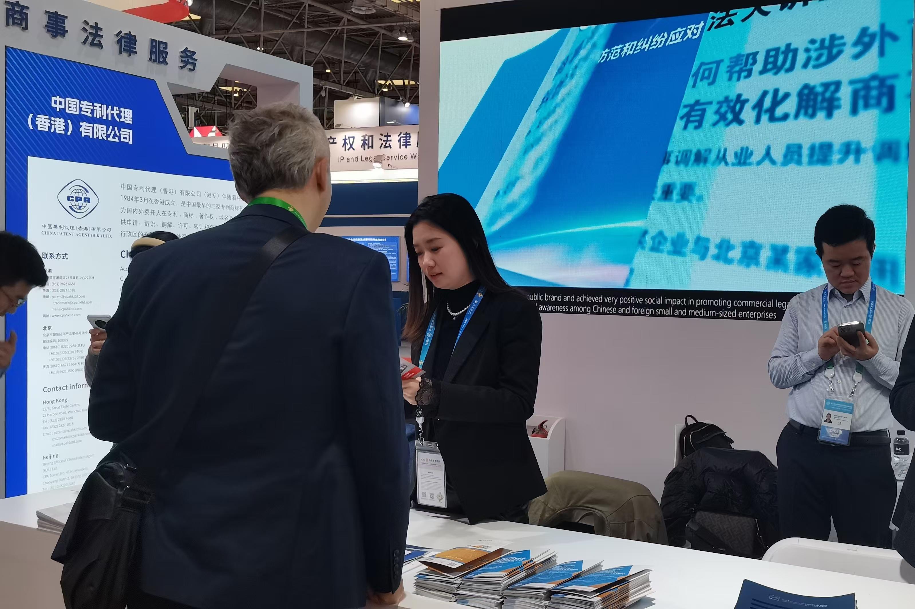 在“中國(guó)貿(mào)促會(huì)商事法律服務(wù)”展區(qū),除貿(mào)仲外,記者還看到中國(guó)貿(mào)促會(huì)所屬的其他商事法律服務(wù)機(jī)構(gòu),如中國(guó)海事仲裁委員會(huì)、中國(guó)貿(mào)促會(huì)專(zhuān)利商標(biāo)事務(wù)所、中國(guó)專(zhuān)利代理(香港)有限公司(以下簡(jiǎn)稱(chēng)“港專(zhuān)公司”),中國(guó)仲裁法學(xué)研究會(huì)和中國(guó)貿(mào)促會(huì)商事法律服務(wù)中心。他們均是上述展臺(tái)的組成機(jī)構(gòu)。