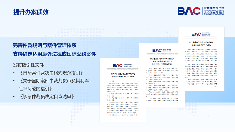 北仲在2009年即頒布了《建設工程爭議評審規(guī)則》,是中國境內(nèi)率先實施評審規(guī)則并設立推薦性質(zhì)評審員名冊的仲裁機構。這一規(guī)則在實踐中多次被當事人選擇適用,并成功助力當事人快速解紛。同時,這一規(guī)則也為聯(lián)合國貿(mào)法會第二工作組于2022年啟動的審裁規(guī)則的制定提供了中國經(jīng)驗。