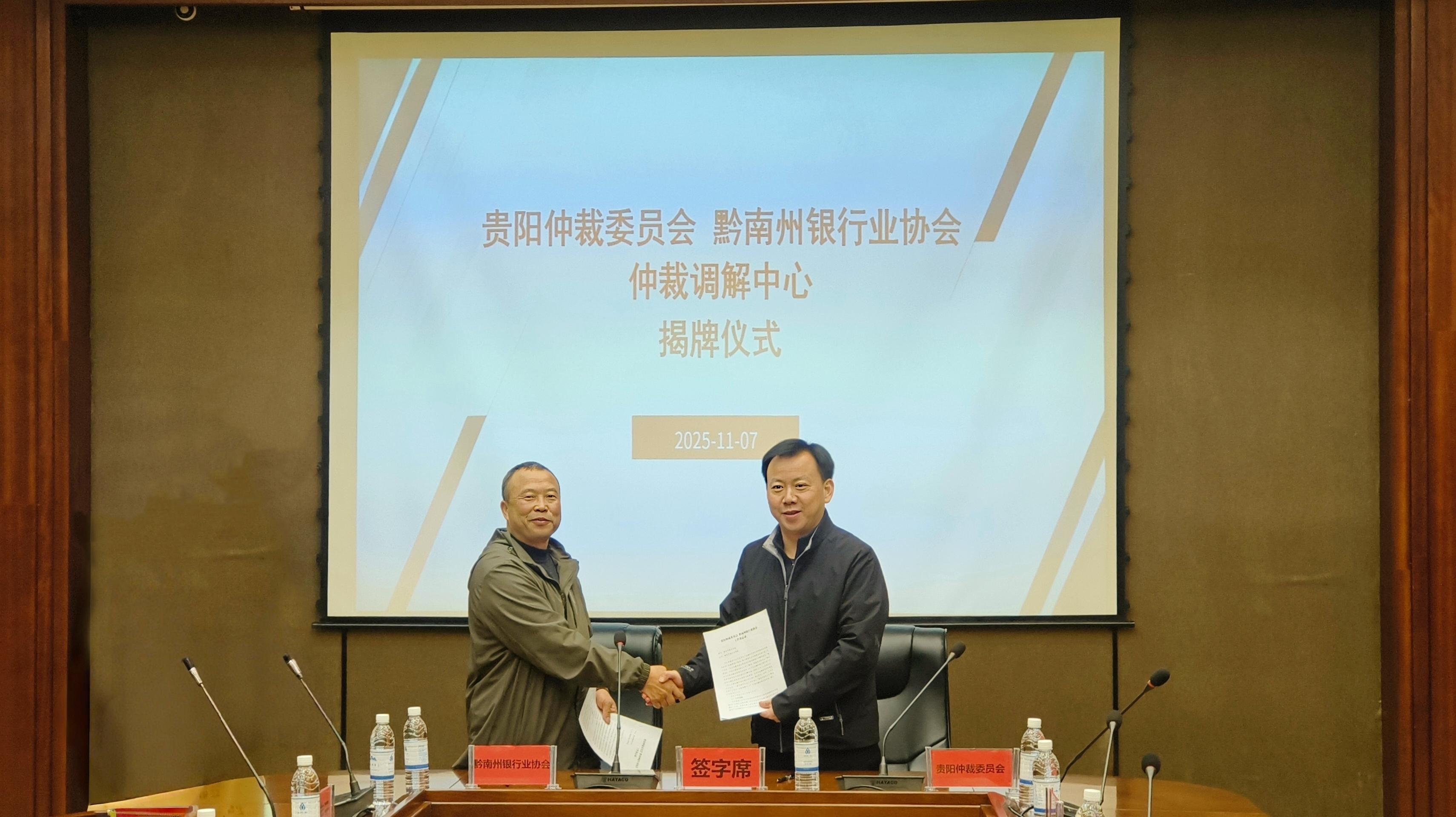 為健全黔南州金融糾紛多元化解機(jī)制,提升金融領(lǐng)域矛盾糾紛化解質(zhì)效,11月7日,“貴陽仲裁委員會黔南州銀行業(yè)協(xié)會仲裁調(diào)解中心”揭牌儀式順利舉行。貴陽仲裁委員會主任卜貴榮、黔南州金融監(jiān)管分局副局長劉廷志共同為仲裁調(diào)解中心揭牌,貴陽仲裁委員會副主任王常毅與黔南州銀行業(yè)協(xié)會秘書長陳傳勛簽署工作備忘錄。
