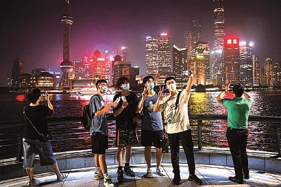 幾位大學(xué)生特地趕來見證暫停開放景觀照明的浦江兩岸。