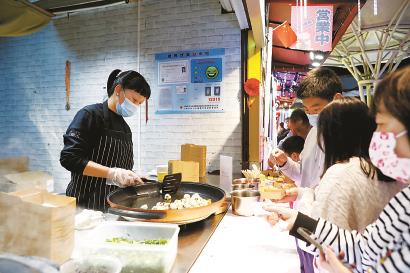 夜市上的拇指生煎包吸引了不少顧客。