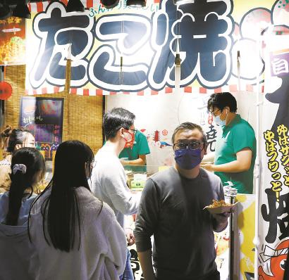 錦江樂園夜市中,顧客購買章魚小丸子。 均本報記者 李茂君 攝