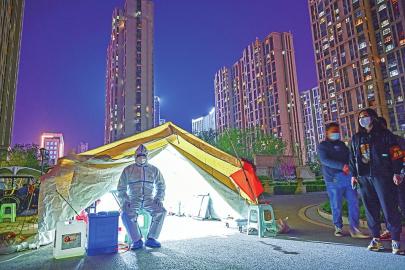 小區(qū)防疫守護(hù)人24小時(shí)不間斷傳遞溫暖。(王鋒攝)