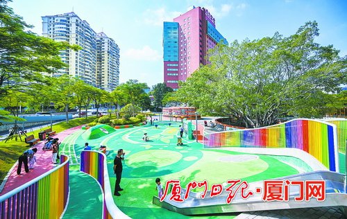 深田社區(qū)街頭小公園“鳳凰園”被改造為互動(dòng)空間。(本報(bào)記者 林銘鴻 攝)