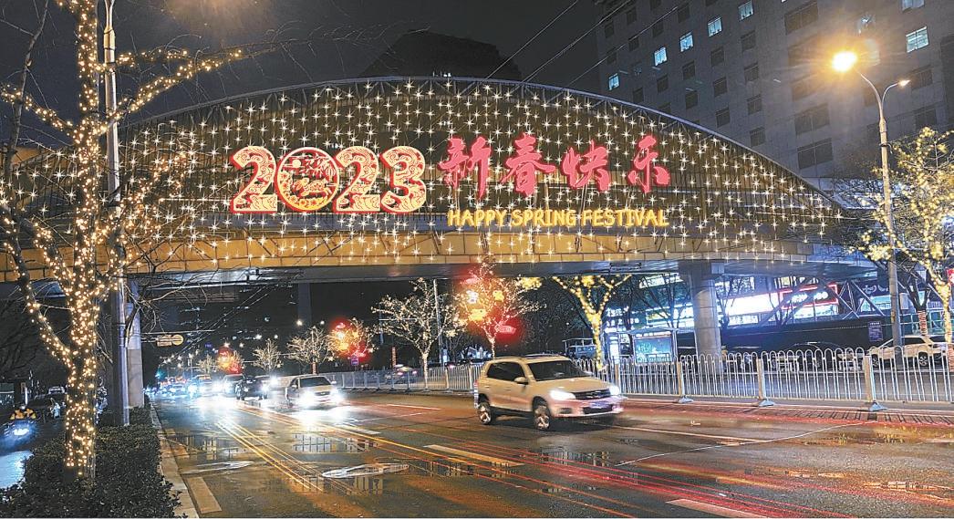 朝陽區(qū)對多條道路及30座天橋進行了夜景裝飾,營造春節(jié)喜慶氣氛(記者程功攝)