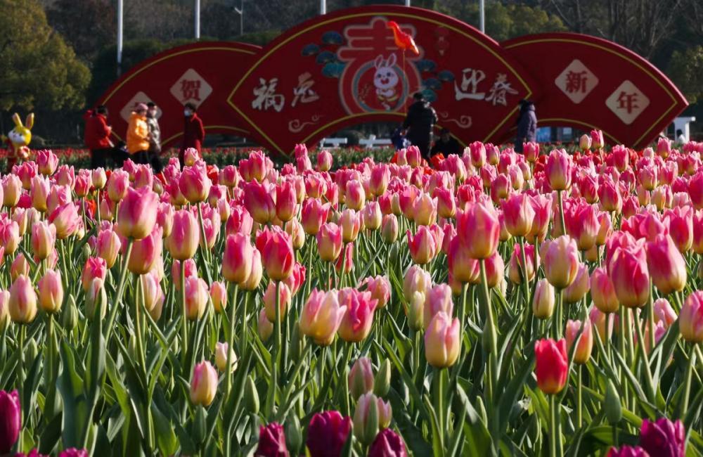 法治網(wǎng)訊(李佳靜 張黎哲)近日,位于浙江省寧波市鄞州區(qū)政府南側(cè)的鄞州區(qū)文化廣場內(nèi),各色郁金香凌寒綻放。為了營造新春喜慶氛圍,鄞州區(qū)綜合行政執(zhí)法局園林部門在該區(qū)域?qū)iT打造“郁金啟春”主題花展,以紅、橙、黃三色郁金香為主打,選用紫衣王子、紅燈籠、卡羅拉等9個(gè)品種共4萬余株郁金香,布展面積2500余平方米。