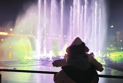 水幕電影開始,隨著音樂旋律變化,噴泉形態(tài)各異,搭配著燈光,圍觀的市民紛紛拍照記錄,附近不少市民在放煙花,小孩圍在兔子燈面前,“尤其是今年,在鞏義我感受到了兒時的年味兒,小城的春節(jié)活動拉近了返鄉(xiāng)人的距離。”