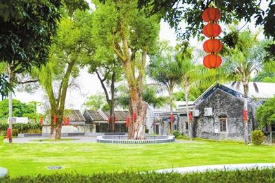 環(huán)境整治改造后的香樟園環(huán)境清幽雅致,功能齊全多樣:樹冠形成宛如穹頂?shù)摹罢陉杺恪?,下方便是圓形樹池座椅,可供居民和游客休憩、觀賞,往上橫街方向望去,一大片開闊草坪讓清新綠意盡收眼底。園內(nèi)還有一塊半圓扇形硬質(zhì)鋪裝小舞臺(tái),地磚雕刻有會(huì)同古村標(biāo)志性的兩座閘門、三座祠堂和兩棟碉樓,將古村文化底蘊(yùn)藏于細(xì)枝末節(jié)中。在這里可舉行小型音樂演奏會(huì)、朗誦比賽、村民議事等活動(dòng),豐富村民的精神文化生活。