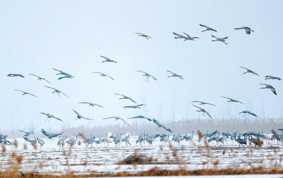 除了天鵝等游禽,雁鴨類的種群數(shù)量也明顯上升。去年冬天,總共有450只灰鶴在官廳水庫越冬,如今,南來的灰鶴與越冬灰鶴合群,數(shù)量上升到了600多只。此外,隊(duì)員們還監(jiān)測到了遠(yuǎn)道而來的白枕鶴、鴻雁、豆雁、赤麻鴨、羅紋鴨等。