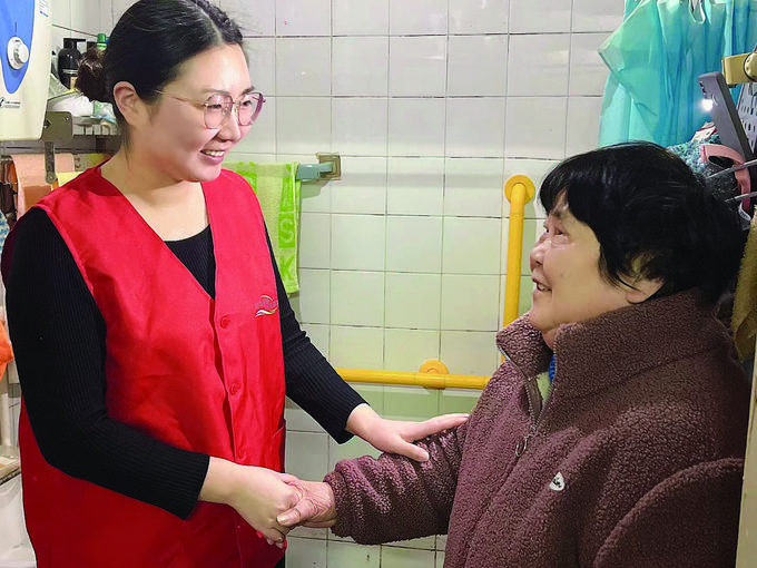 劍苑新村9幢,八旬獨居夫婦朱志明和李玨珍迎來了安裝“黃扶手”的施工人員。朱志明腿腳不方便、長期坐輪椅,幫老伴洗澡、如廁成了李玨珍最頭疼的事情。“適老化改造為我們解決了不少生活中的難題。”李玨珍告訴記者,在此居住近40年,平日里,社區(qū)會給兩人安排身體檢查,還常來慰問,有活動也會來邀請參加,自己覺得很溫暖。