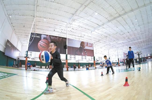 斯伯丁籃球館內(nèi),既有齊腰高的孩子在跟著教練學(xué)習(xí)如何運(yùn)球,也有青年人在球場(chǎng)上你來(lái)我往激戰(zhàn)正酣。這里是北京市第一個(gè)由國(guó)際品牌“斯伯丁”冠名的球館,場(chǎng)館里有4個(gè)標(biāo)準(zhǔn)籃球場(chǎng),不僅有看臺(tái),還配置了高清攝像系統(tǒng)和環(huán)繞立體音效系統(tǒng),能夠即時(shí)直播、下載,還有專(zhuān)業(yè)的燈光照明。
