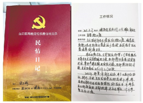 翻看網格黨員們的《民情日記》,“黃阿姨反映涌邊東街西一巷15號旁邊的小巷有垃圾堆”“葉婆婆想申請安裝一個平安鐘”“陳叔反映中街一巷的路燈壞了”“梁伯反映他家門前的下水井堵塞”……一頁頁記錄的都是居民群眾反映的“雞毛蒜皮”“小事”,從“記賬”到“銷賬”都記錄得一清二楚。