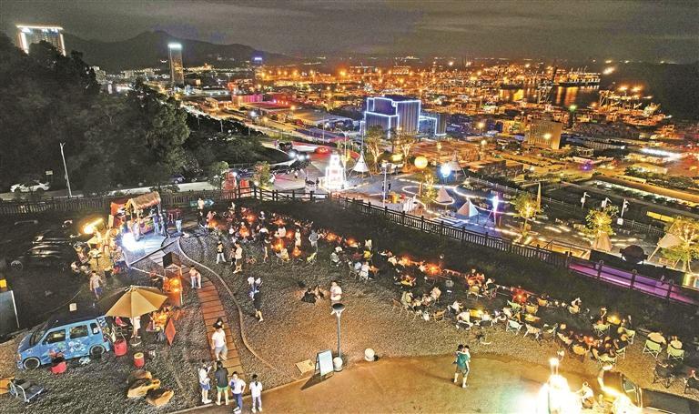 俯瞰鹽田港的海天獨特夜景,感受海濱城市獨特夜間風情,鹽港夜市吸引了不少市民群眾前去消夜、打卡。(記者 楊浩翰 攝)
