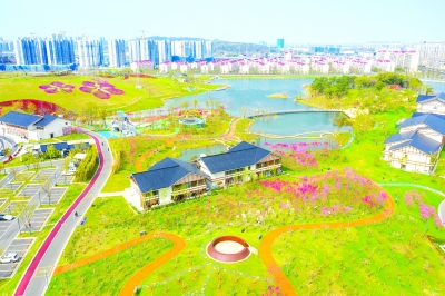 2020年,江北新區(qū)圍繞長江大保護、水環(huán)境提升的建設(shè)原則,對原有湖區(qū)進行清淤和沖洗,并通過“拆、清、治、建、擴、引、修”等措施,拆除城中村、清理各類垃圾、種植水生植物……從而徹底改善了湖區(qū)水質(zhì),打造富有特色、多樣化、親水性的公園景觀水系。2021年,桃湖公園正式對外迎客,新栽種的75個桃樹品種,讓這里成為南京最大的桃花觀賞基地,搭配原有植物,桃湖公園隨處可見喬木、灌木、草坪,到處都是大自然的氣息。如今,桃湖公園已成為當(dāng)?shù)鼐用裨诩议T口休閑游玩、鍛煉身體的一處絕佳場所。