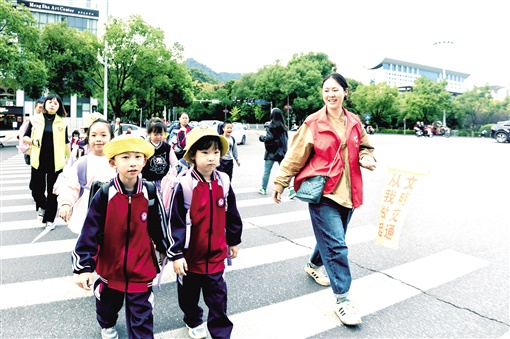 “小朋友,過馬路慢點。”“師傅,麻煩您讓孩子和家長先過馬路?!奔资薪痪瘏堑ず完爢T們,每天上下學高峰時期,輪班來到吉首市第八小學開展“護學”工作。