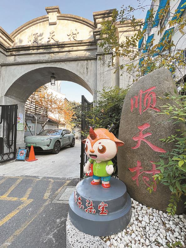成都北路順天村大門口,站著一只卡通“法寶”。