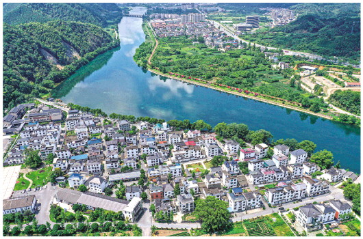 ▲在浙江省衢州市開化縣拍攝的錢塘江源頭河——馬金溪沿岸金星村。當(dāng)?shù)刈畲笙薅鹊乇A袅饔驗┑貫┝郑瑢ⅰ肮痰?綠岸+慢道”結(jié)合建設(shè),帶動鄉(xiāng)村旅游和民宿經(jīng)濟(jì)大力發(fā)展(2023年8月2日攝)。新華社記者 黃宗治 攝