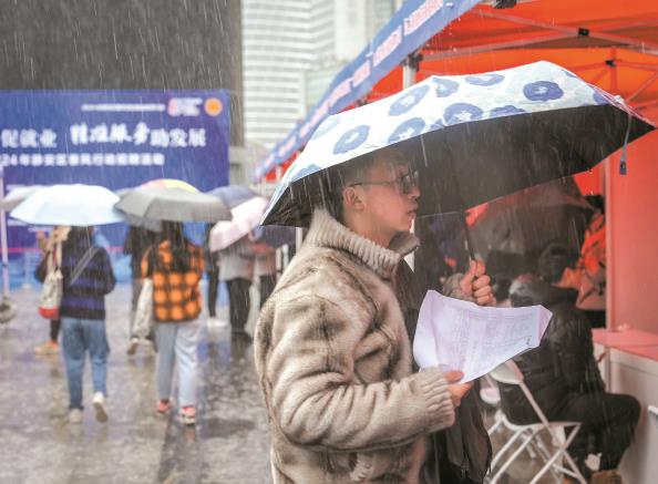 盡管春寒料峭、大雨滂沱,這兩天在上?;疖囌颈睆V場舉行的2024年靜安區(qū)“春風(fēng)行動(dòng)”招聘會卻“火了”,求職者們從城市的四面八方趕來,有的剛走出火車站,就碰上了這個(gè)寶貴的機(jī)會。