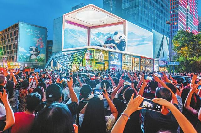 裸眼3D 成都太古里路口的裸眼3D大屏,吸引全國(guó)各地游客來(lái)此打卡。