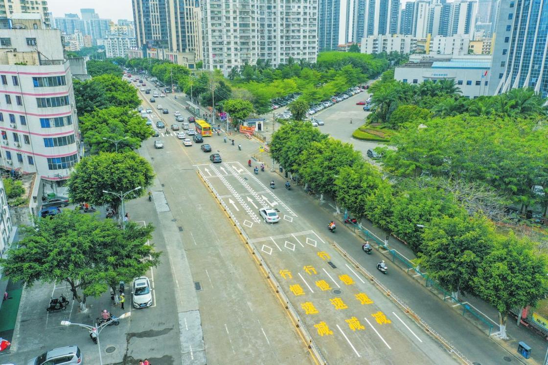 采訪中,海口交警提示,新增的道路標線不影響機動車變道,機動車變道仍根據(jù)道路虛實線規(guī)則。(記者 黎越)