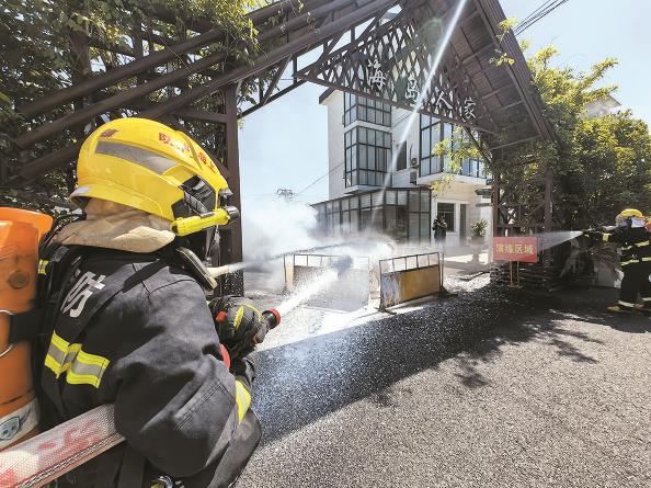 5月10日舉行的消防應(yīng)急演練中,電動自行車自燃是關(guān)注重點(diǎn) 記者 張龍 通訊員 黃海華 攝