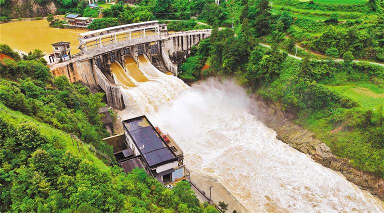 6月18日,位于貴州省錦屏縣境內(nèi)的八河水電站開閘泄洪。楊曉海 攝(中經(jīng)視覺)