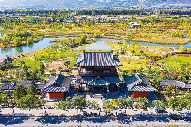 位于山西太原汾河畔的雁丘園一景(2023年10月10日攝)。記者 楊晨光 攝