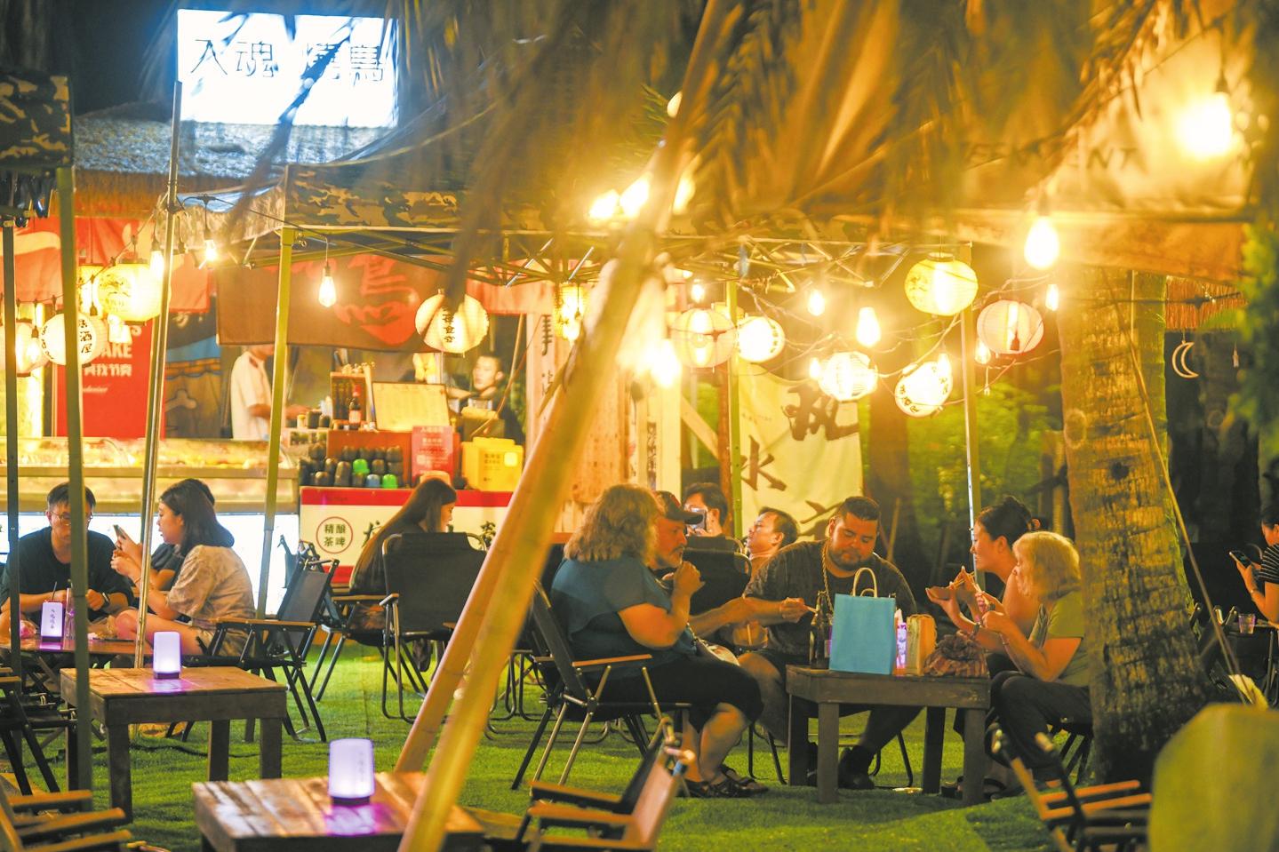 傍晚時分,市民游客在FUNBAY自在灣商業(yè)街區(qū)享受美食。記者 康登淋 攝