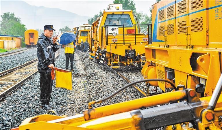 7月26日,遼寧省本溪市突降暴雨,中國鐵路沈陽局集團有限公司沈陽工務(wù)機械段的大型養(yǎng)路機械司機冒雨檢修線路,確保鐵路運輸安全。陳明攝(中經(jīng)視覺)