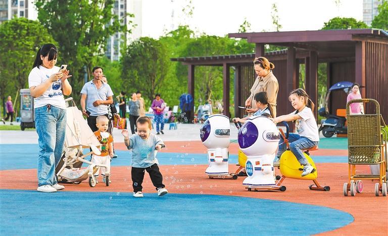重慶市墊江縣白龍公園,市民在游玩。當(dāng)?shù)匾呀ǔ纱笮」珗@近60個(gè),盤活城市閑置空地,讓“推窗見綠、出門入園”成為城市生活常態(tài),讓市民享受“綠色福祉”。龔長(zhǎng)浩 攝(中經(jīng)視覺)
