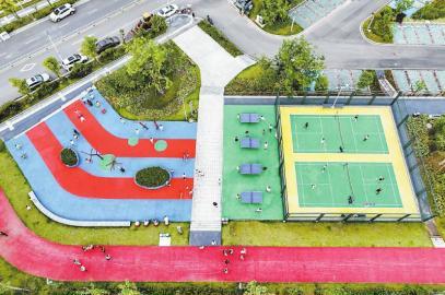 籃球場上、乒乓球桌旁,不少市民揮汗如雨;小廣場上,潮媽潮姐們正跟著節(jié)奏跳廣場舞;高大的棕櫚樹下,市民坐在草地上納涼……8月18日傍晚,成都市區(qū)退去了白天的暑熱,記者走進成都市武侯區(qū)麗都運動公園,看到不少市民正在公園里游玩、健身。這是成都最新打造的“口袋公園”。推窗見綠、出門見景、鳥語花香——這樣的場景在我們身邊隨處可見,大家在觸手可及的“口袋公園”里游玩、健身,享受家門口的“小確幸”。