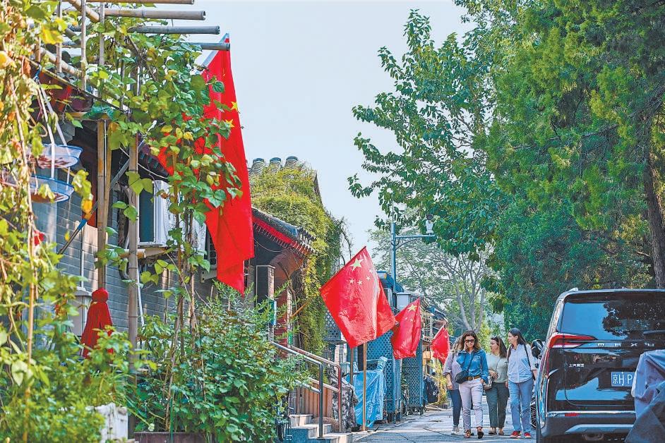 9月24日,記者在西城區(qū)西交民巷社區(qū)東中胡同看到,家家戶戶已經(jīng)掛起五星紅旗,迎接國慶佳節(jié)到來。實習記者 金瑤 攝