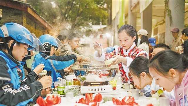 “在這個(gè)寒冷的季節(jié),能喝上一碗熱茶,吃上熱烘烘的紅薯,既暖了胃又暖了心!”11月16日下午,“留學(xué)重慶·讀懂農(nóng)歷”中外青少年自然探索農(nóng)歷體驗(yàn)活動(dòng)在沙坪壩區(qū)土灣街道重棉院開展。來自美團(tuán)、餓了么的30名外賣騎手,與中外青少年一起體驗(yàn)圍爐煮茶、插花、烤面包紅薯等冬日習(xí)俗,并為當(dāng)?shù)仞B(yǎng)老院老人送去了羊肉湯、餃子等美食?;顒?dòng)結(jié)束后,美團(tuán)騎手周杰感慨道:“現(xiàn)在社會(huì)各界都來關(guān)心關(guān)愛我們,特別暖心。”