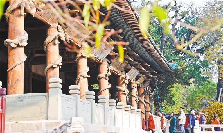 11月8日,游客在太原市晉祠博物館參觀游覽。近年來,晉祠博物館通過收藏保護、學(xué)術(shù)研究、宣傳展示、社會教育等,全方位活化展現(xiàn)晉祠豐厚的歷史文化資源。