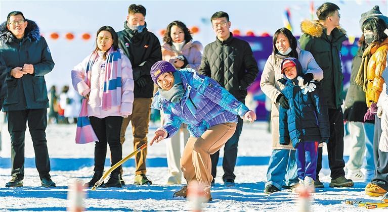 1月10日,游客在內(nèi)蒙古呼和浩特市賽罕區(qū)城市冰雪那達(dá)慕上參加民俗活動(dòng)。丁根厚 攝(中經(jīng)視覺)