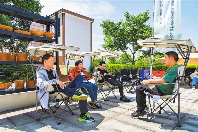 4月26日,浙江省金華市雙龍風景旅游區(qū)(金華山)“露營之家”基地,游客在體驗露營裝備。從帳篷和桌椅,到天幕和投影儀,消費者對露營裝備的需求日益多樣化。胡肖飛攝(中經(jīng)視覺)