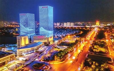 友誼南路夜色中的津典時(shí)代廣場(chǎng)(左)和蓮花酒店(右)如同璀璨的明珠
