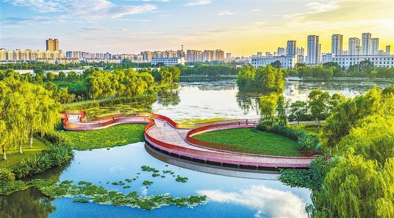 近日,雨后天晴,江蘇省宿遷市泗洪縣大樓街道尾水濕地公園美如畫卷。近年來(lái),當(dāng)?shù)卮罅ν七M(jìn)生態(tài)環(huán)境治理,在污水處理廠旁建成尾水濕地公園,既凈化水質(zhì),又為市民打造休閑場(chǎng)所。張連華 攝(中經(jīng)視覺)