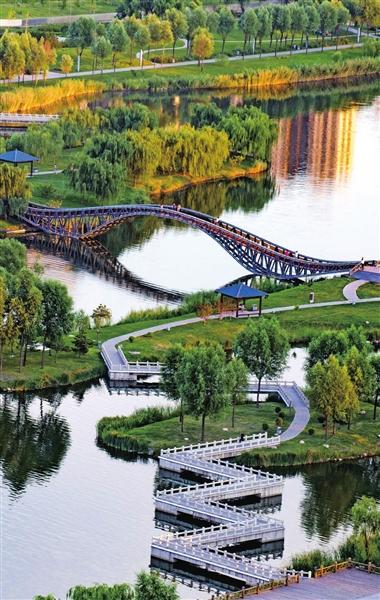 風(fēng)光旖旎,是河流的容顏。順流而下,汾河四期如一幅水墨長(zhǎng)卷在城北徐徐鋪展。雁丘園內(nèi),當(dāng)年元好問(wèn)筆下“問(wèn)世間、情是何物”的慨嘆,如今沉淀為濕地間婉轉(zhuǎn)的鳥鳴與蘆葦迷宮的低語(yǔ)。流水潺潺,棧道曲折,每一處彎折都藏著靜謐的驚喜。再往前行,豁然開朗處,“小三亞”的金色沙灘在陽(yáng)光下閃耀,孩子們追逐嬉戲,帳篷如花朵點(diǎn)綴在碧水金沙之畔,城市人心中向往的“遠(yuǎn)方”觸手可及。