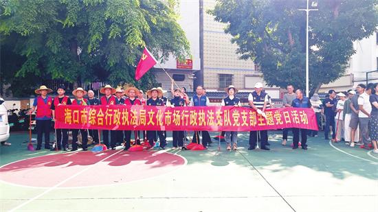 7月27日,海口市綜合行政執(zhí)法局文化市場行政執(zhí)法支隊(下稱文化支隊)全體黨員干部前往結(jié)對社區(qū)——美蘭區(qū)海甸街道福安社區(qū),開展愛國衛(wèi)生運(yùn)動,以實際行動助力城市環(huán)境提升和防蚊滅蚊工作。