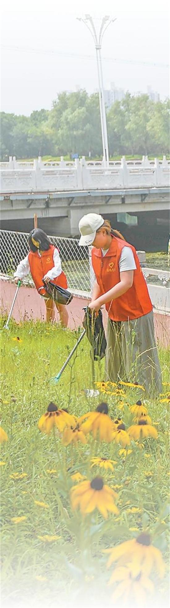 河北省遵化市森林公園,大學(xué)生志愿者在撿拾垃圾。生態(tài)環(huán)境持續(xù)改善,離不開(kāi)公眾環(huán)境保護(hù)意識(shí)的提升。劉滿(mǎn)倉(cāng)攝(影像中國(guó))