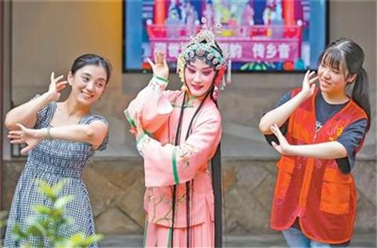 福建省福州市鼓樓區(qū)安泰街道綜合文化站,閩劇演員(中)教授表演技藝。當(dāng)?shù)赝苿?dòng)“古厝+非遺+展演”等多元化發(fā)展,有效傳播閩都“福”文化,構(gòu)建“15分鐘幸福生活圈”,讓市民和游客感受非遺之美。謝貴明攝(人民視覺(jué))