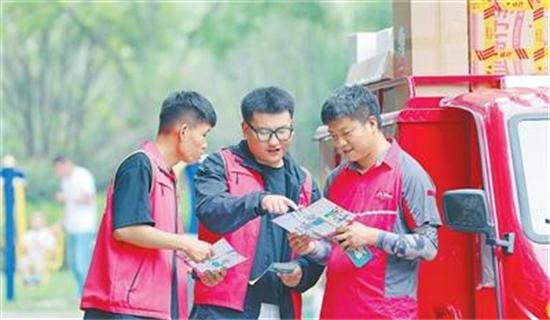 云南省曲靖市陸良縣同樂(lè)街道西華社區(qū),志愿者為快遞員送上法律服務(wù)。各地關(guān)心關(guān)愛(ài)新就業(yè)形態(tài)勞動(dòng)者,通過(guò)送法律、送健康、送關(guān)愛(ài)等形式,提供多樣化暖心服務(wù)。楊文明 王勇攝影報(bào)道