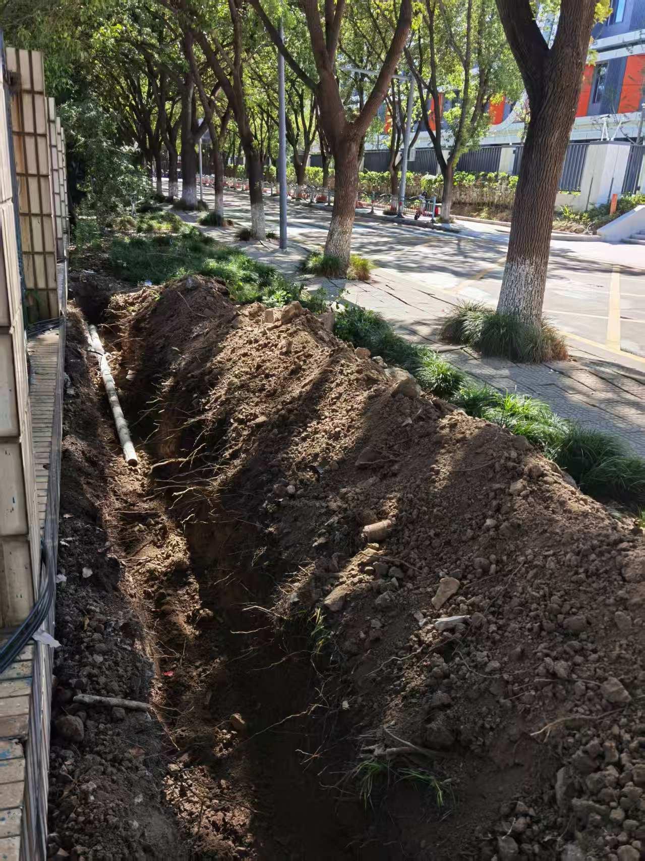據(jù)執(zhí)法人員介紹,在日常巡查中發(fā)現(xiàn),涉事店鋪正組織工人開挖門前公共綠化帶,已挖出長約15米、寬1米的管溝,周邊草坪及灌木遭到損毀,施工產(chǎn)生的泥土散落綠地周邊?!拔覀儺敿唇型J┕?,現(xiàn)場詢問得知,店主為趕裝修進度,認為‘自家門前挖一點沒事’,未向市政部門申請審批便擅自施工?!眻?zhí)法人員表示。